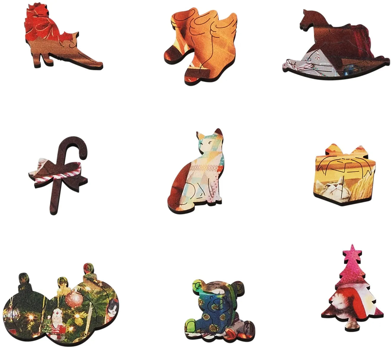 With detailed artwork and intricately shaped, themed whimsies inspired by the details within this colour Christmas image. This traditional jigsaw puzzle is made using thick 4mm wood and state-of-the-art laser cutting technology to ensure each piece fits together with a snug and satisfying 'click'. This jigsaw puzzle is designed to last a lifetime so you can enjoy it for years to come.