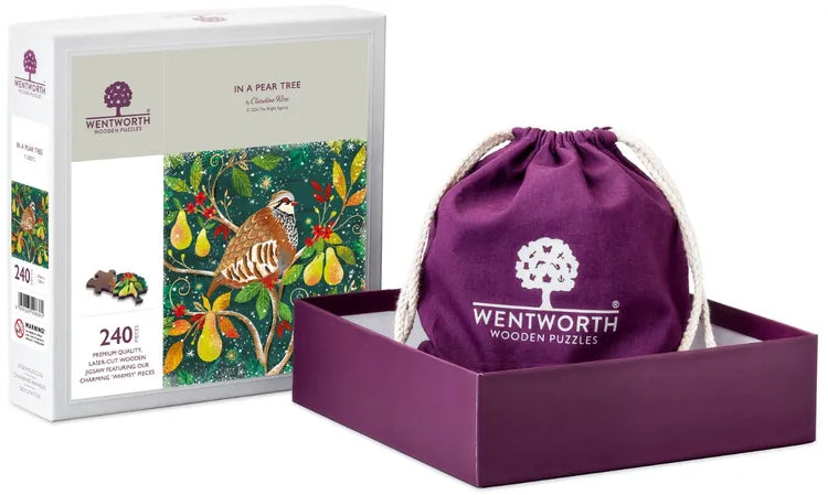 Claudine's contemporary partridge in a pear tree image makes a colourful jigsaw puzzle for adults. Featuring themed whimsies and irregularly shaped pieces is sure to provide hours of festive fun.
