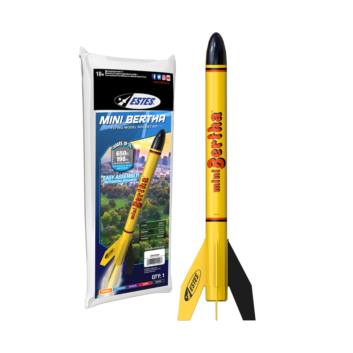 The Mini Bertha features a reliable streamer recovery system for a gentle descent back to Earth, ensuring a successful launch that can be repeated over and over again! The vibrant yellow color not only adds a dash of personality to your rocket but also enhances visibility against the backdrop of the sky! With the Estes Mini Bertha, you're not just launching a rocket – you're igniting a passion for discovery and adventure! Unleash your inner explorer and experience the thrill of flying with the Estes Mini Bertha!