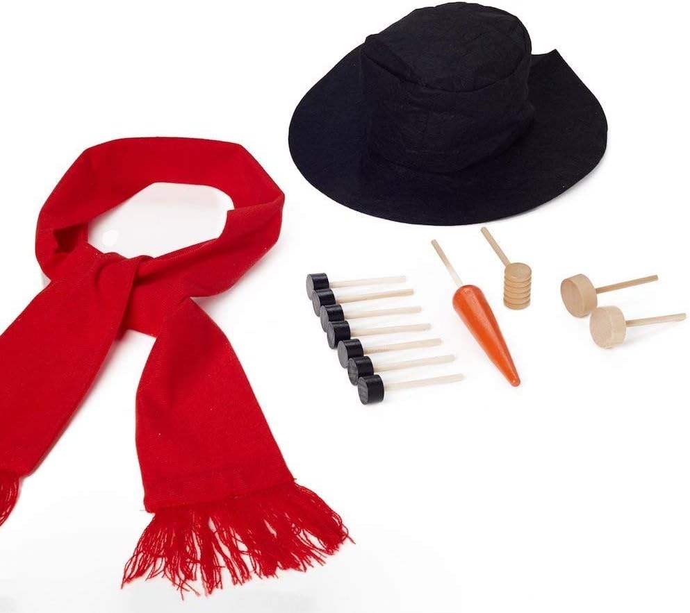 - Kit includes: Top Hat, 2 Eyes, Carrot Nose, Mouth, Pipe, Scarf and Buttons