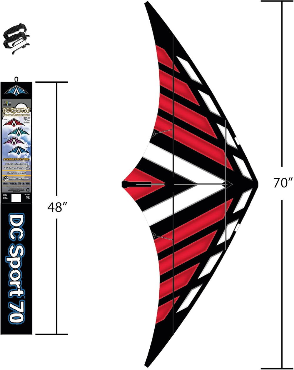 • DC SPORT 70 RED: Find your favorite open space and have an exciting dual control sport kite flying experience; With little practice, you will be able to do loops, dives and more
