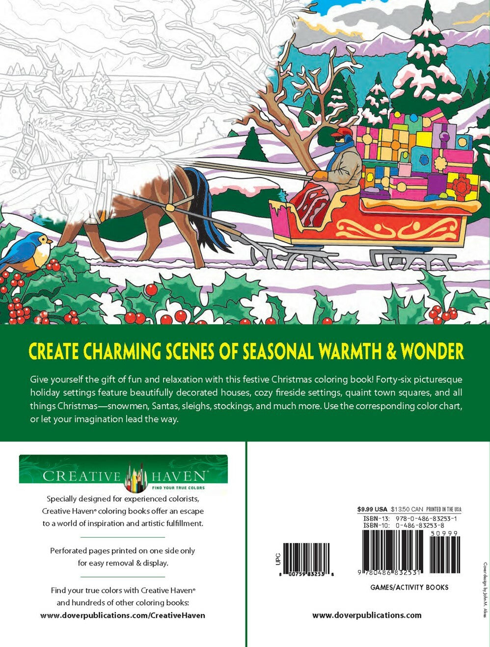 Give yourself the gift of fun and relaxation with this festive Christmas coloring book! Forty-six picturesque holiday scenes feature beautifully decorated houses, cozy fireside settings, quaint town squares, and all things Christmas — snowmen, Santas, sleighs, stockings, and much more. Use the corresponding color chart, or let your imagination lead the way. Pages are perforated and printed on one side only for easy removal and display. Specially designed for experienced colorists, Christmas Color By Number and other Creative Haven® adult coloring books offer an escape to a world of inspiration and artistic fulfillment. Each title is also an effective and fun-filled way to relax and reduce stress.