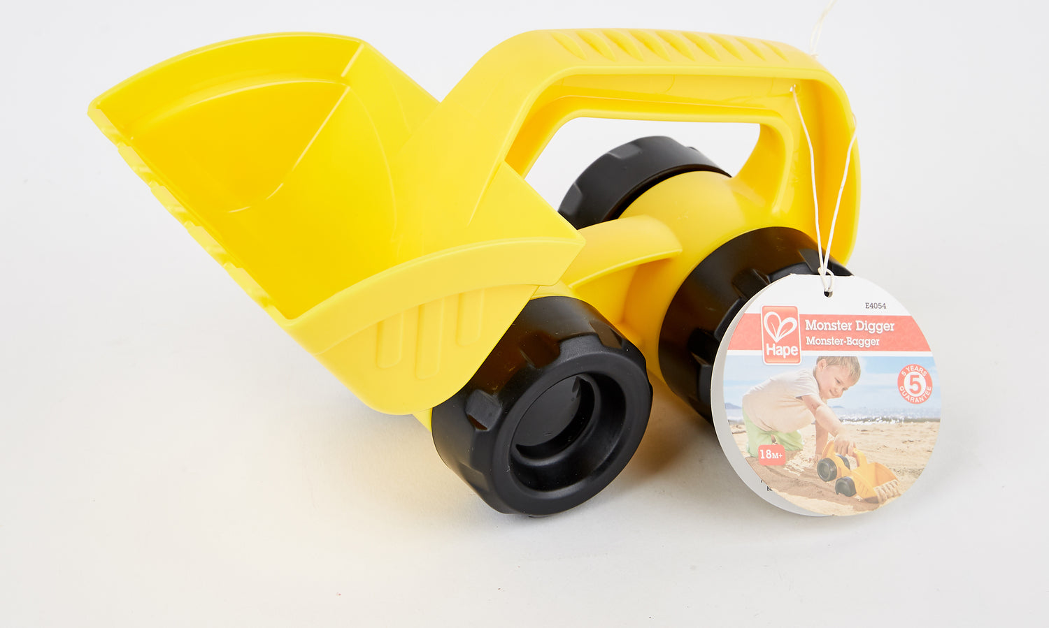 The Monster Digger is an innovative sand toy that can roll, dig and transport sand. Hold and drive the car using the chunky, easy-grip handle and dig up the sand by leaning the car down. You can also make interesting tracks in the sand with the wide wheels as you play! Made from high-quality, durable materials and ideal for beach play. Includes a five year guarantee. Suitable for children aged 18 months and up.