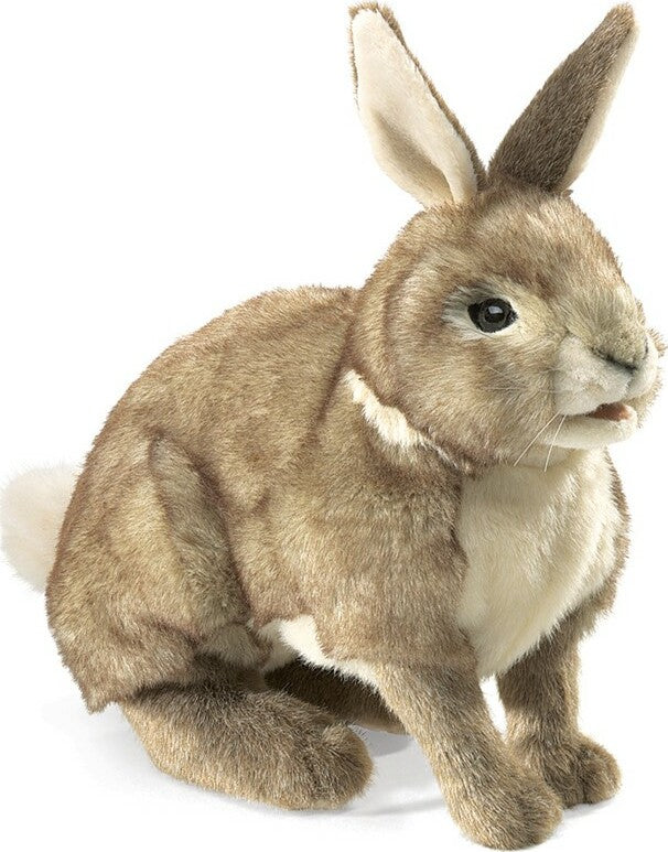 Folkmanis' COTTONTAIL RABBIT is 15 inches and super soft. It sits alert with ears perked; front paws and mouth are movable on this life-like rabbit.