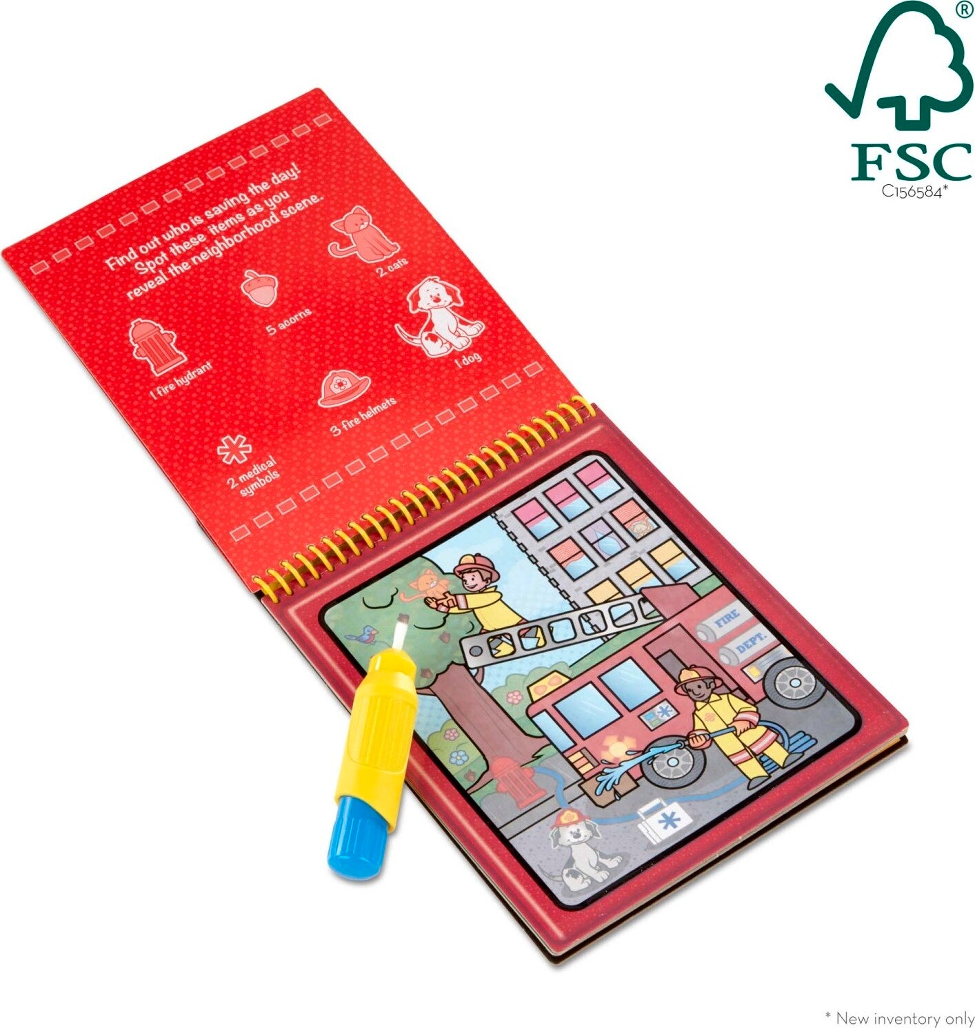 Make early learning magical and mess-free with the Melissa & Doug On the Go Water Wow! Alphabet Activity Pad! This reusable paint-with-water book includes 4 spiral-bound pages and a refillable, no-leak water pen that reveals letters and colorful images with every stroke—then dries to "erase" for endless repeat play. Featuring a vehicle theme, the pad includes four scenes to color and a search-and-find activity for each one. It's a fun, screen-free way to build early literacy, fine motor skills, and hand-eye coordination—at home or on the go. Perfectly sized for little hands, the chunky water pen stores in the cover, making this a parent-approved travel toy for car rides, airplanes, waiting rooms, and quiet time at home. Whether you're celebrating a birthday, holiday, back-to-school season, preschool milestone, or gearing up for travel, this screen-free, hands-on activity makes a thoughtful gift for kids ages 3 to 7. Compact enough to fit in backpacks and carry-ons, it's a fun and educational way to keep little ones engaged on the go. Pair it with a Melissa & Doug Reusable Sticker Pad for even more creative learning wherever you are.