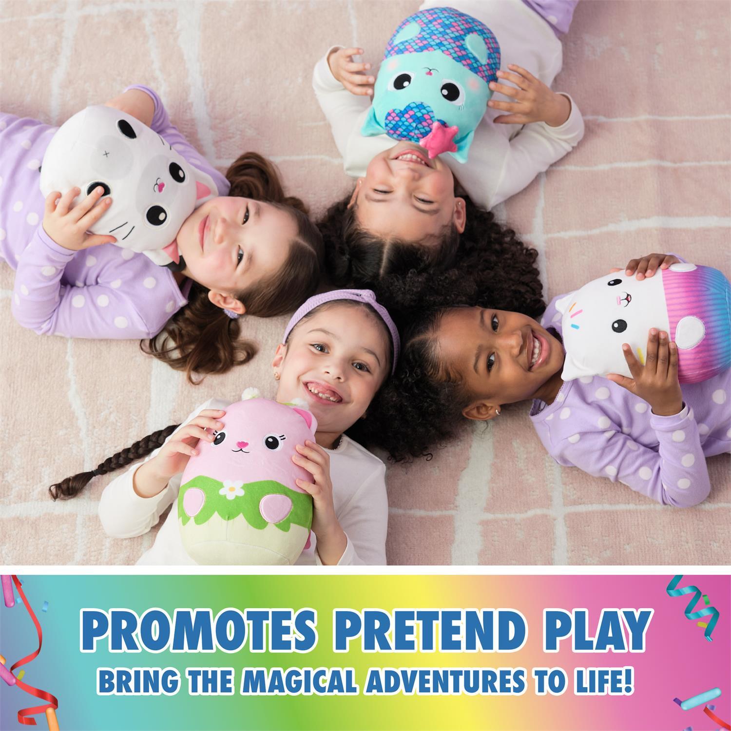 - GIFT CUDDLES: Cakey Cat, Pandy Paws, MerCat, and Kitty Fairy are all ready to join the party as satisfyingly squeezable plush! Collect all and bring every Gabby's Dollhouse adventure to life in squishy 8' and 12' sizes.