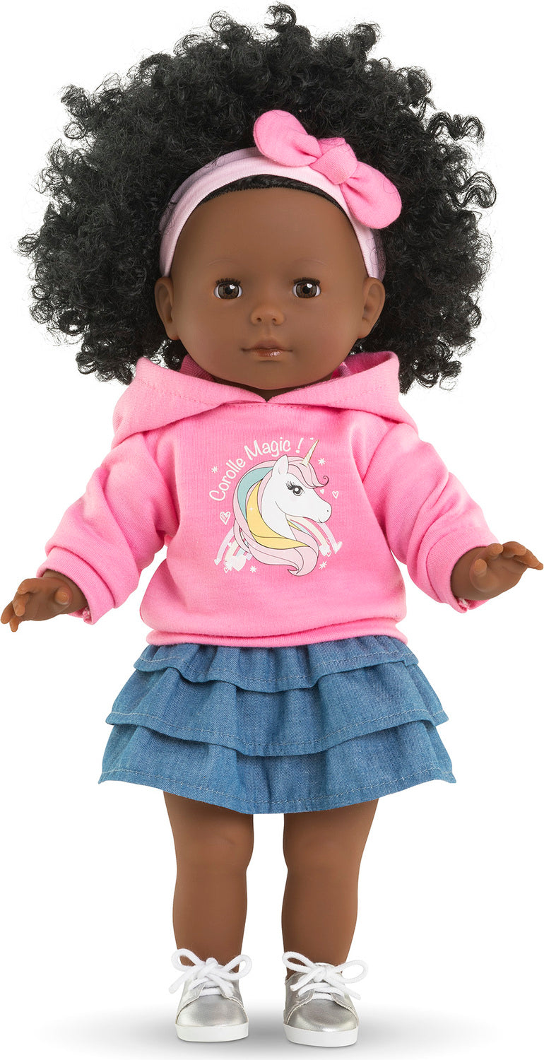 Maelys is a 14” doll that is perfectly sized to be cradled in a young child's arms and is ideal hugging and cuddling. Her soft body allows her to take on the same positions as a real baby, and her brown eyes softly close when in a sleeping position. Part of the Mon Grand Poupon Corolle collection of dolls, accessories and clothing.